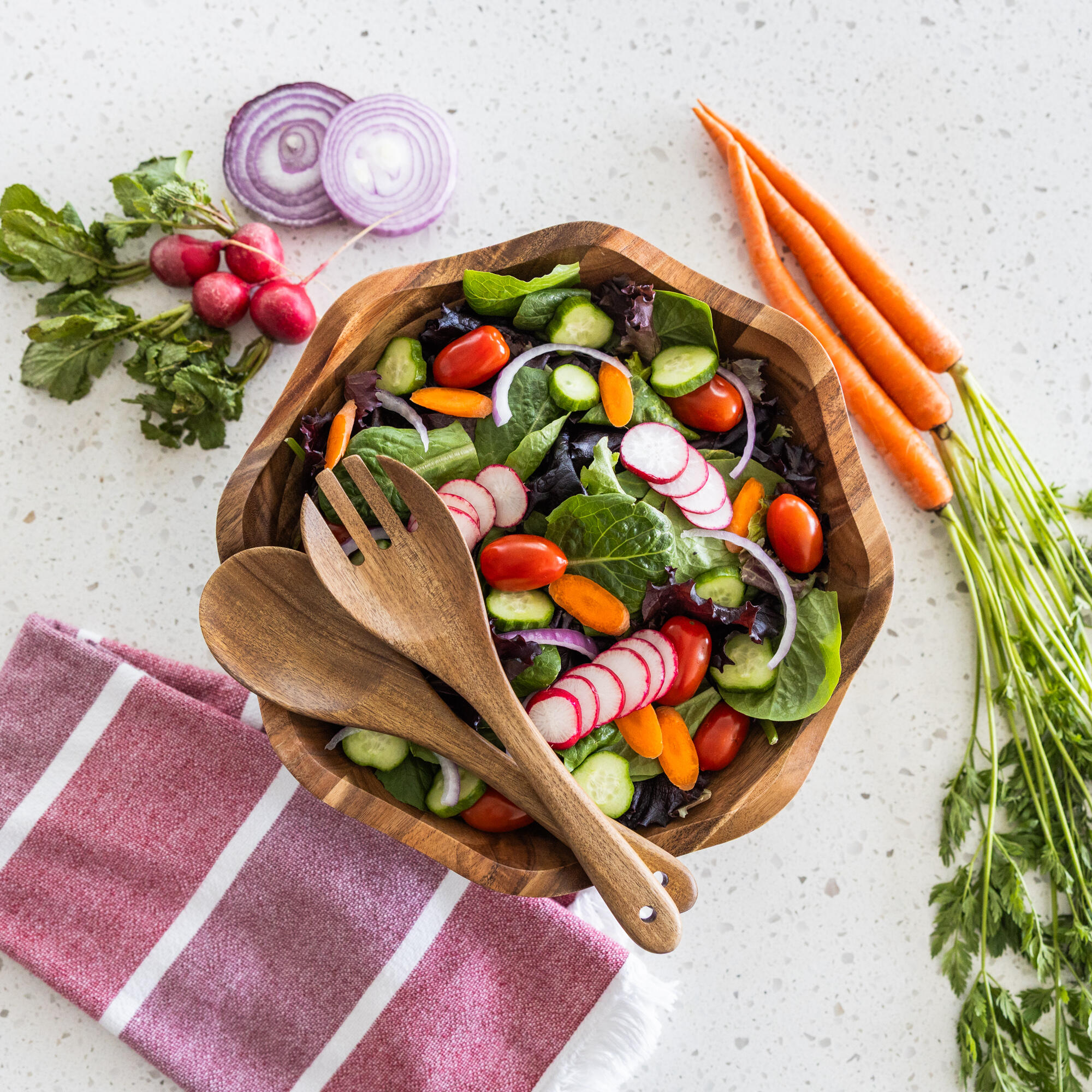 Made from premium, sustainably sourced acacia wood, this salad serving bowl offers exceptional durability—twice as resistant to cracks, stains, and wear compared to bamboo and other wooden bowls. Its rich, natural grain enhances your kitchen’s aesthetic while ensuring safe, long-lasting use.