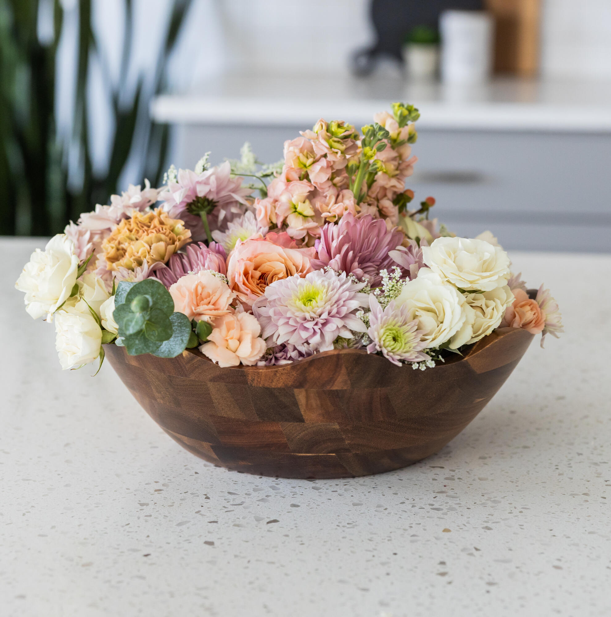 Includes a handcrafted Acacia wooden spoon set, perfectly matching the bowl's aesthetic for an elegant serving experience.